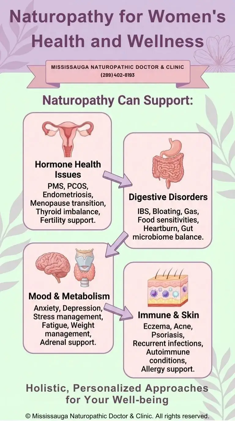 Whether you’re dealing with hormonal imbalances, digestive concerns, or persistent low energy, our naturopathy services in Mississauga is designed to restore and enhance your overall well-being. Through a natural and holistic approach, we focus on addressing the root causes of health issues while promoting sustainable wellness. Similar to primary care, our goal is to support you in resetting your health, strengthening your body’s natural defenses, and preventing the onset of illness and chronic conditions.